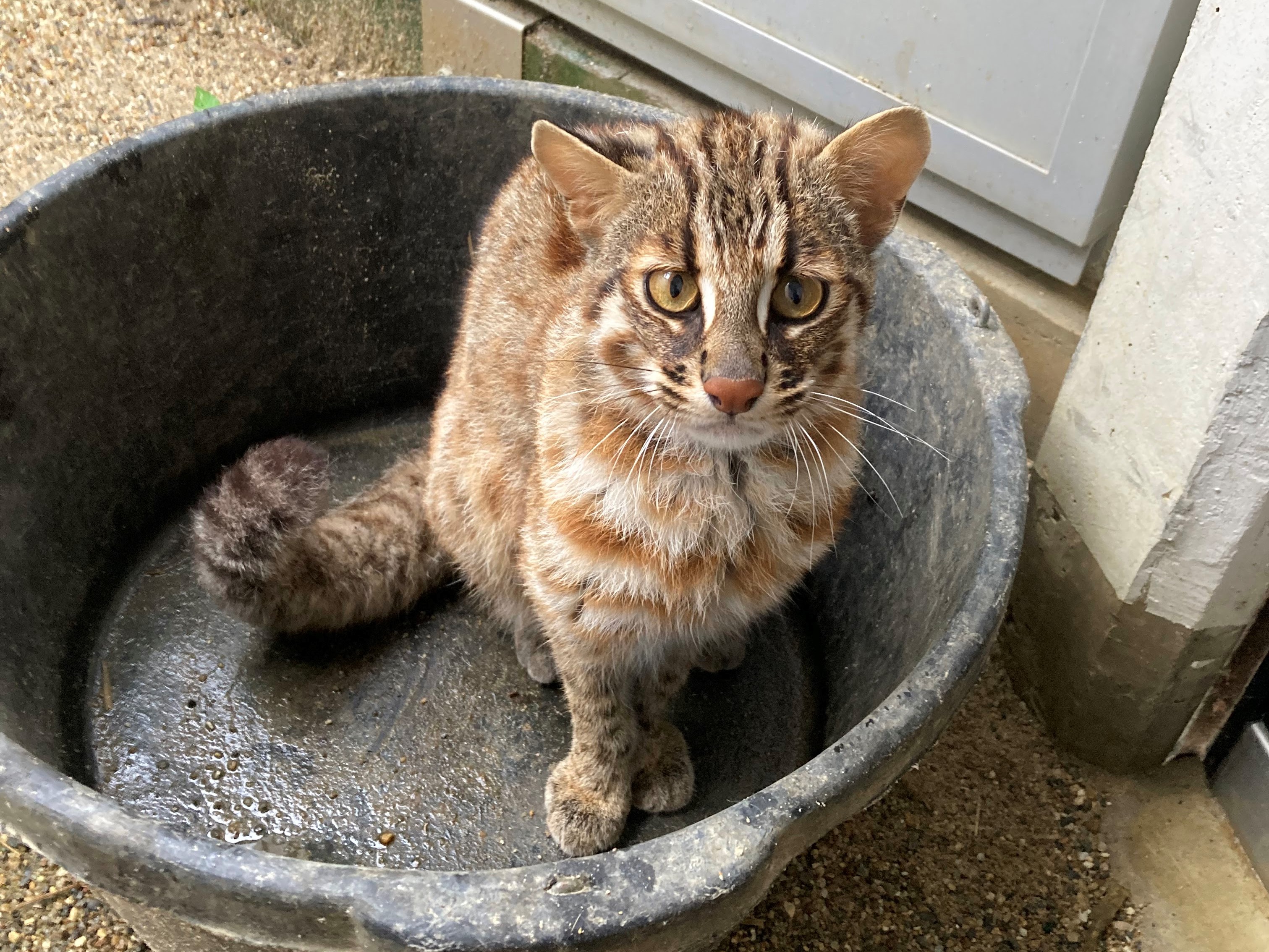 2000年には、福岡市動物園にて初めてツシマヤマネコの(自然)繁殖に成功しました。また、2021年には、横浜市立よこはま動物園にて腹腔鏡を用いた人工授精によりツシマヤマネコの赤ちゃんが誕生しました。人工授精によるツシマヤマネコの繁殖成功は、国内で初めての事例となります。