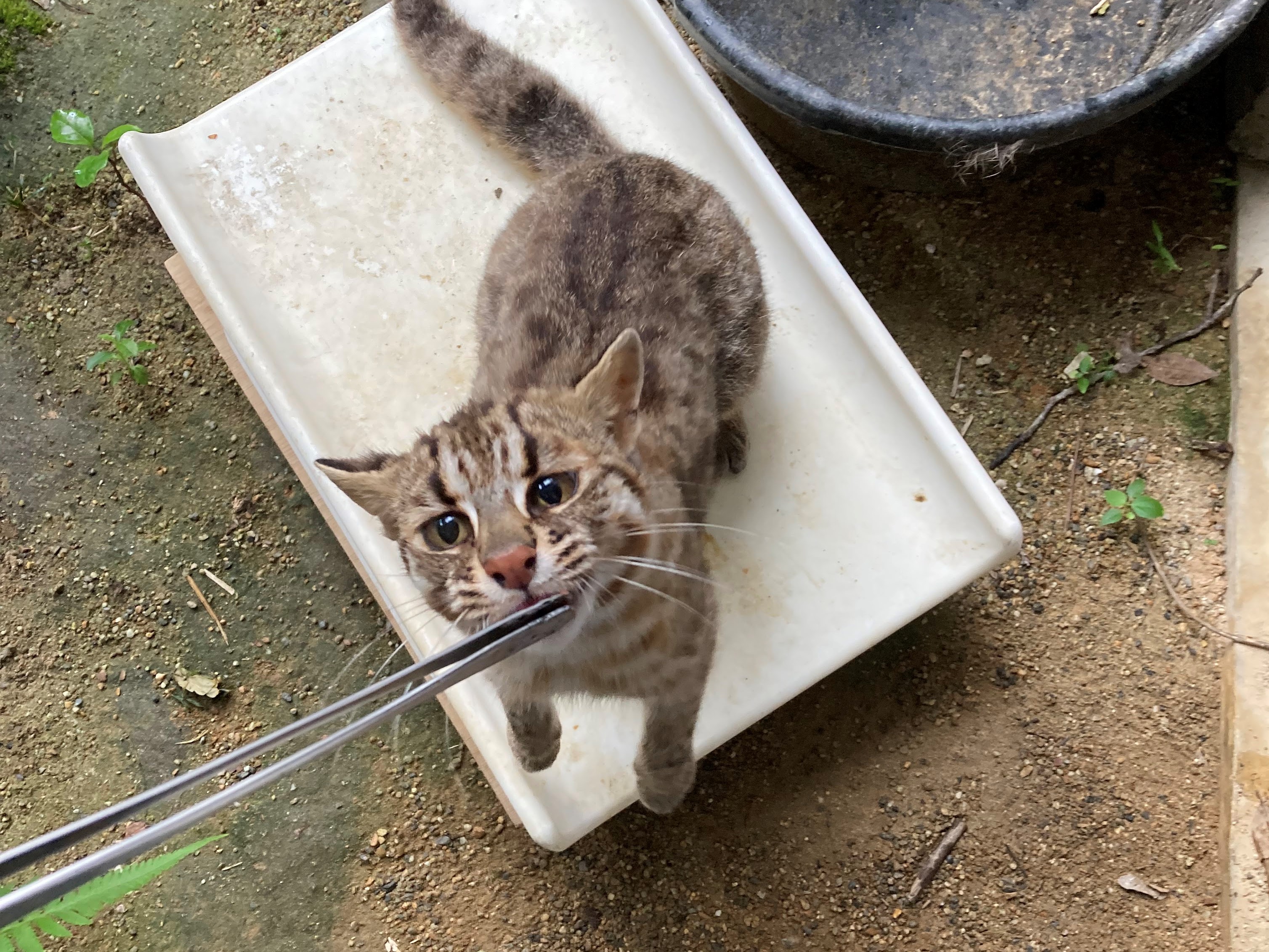 2000年には、福岡市動物園にて初めてツシマヤマネコの(自然)繁殖に成功しました。また、2021年には、横浜市立よこはま動物園にて腹腔鏡を用いた人工授精によりツシマヤマネコの赤ちゃんが誕生しました。人工授精によるツシマヤマネコの繁殖成功は、国内で初めての事例となります。